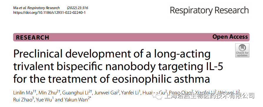 近期,由G22恒峰集团生物主导开发的长效IL5纳米抗体,可用于治疗嗜酸性粒细胞性相关疾病,包括嗜酸性哮喘(EOS-Asthma)、高嗜酸性粒细胞综合征(HES)和嗜酸性肉芽性多血管炎(EGPA)等。相关研究成果发表于《Respiratory Research》杂志,题为“Preclinical development of a long-acting trivalent bispecifc nanobody targeting IL-5 for the treatment of eosinophilic asthma”(IF=7.162)。本文通讯作者为上海G22恒峰集团生物万亚坤博士。